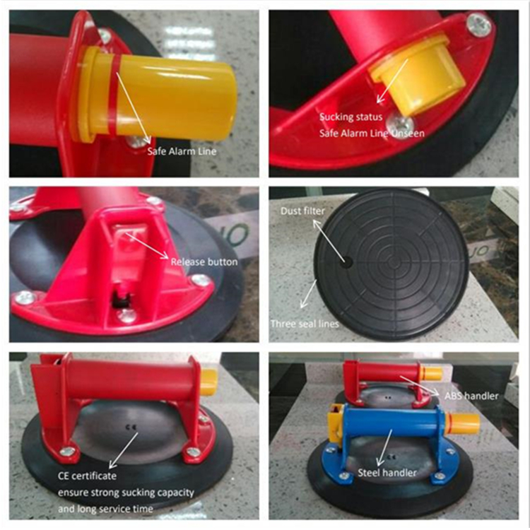 用于吸附非滲漏平滑表面,4次按壓吸附,一鍵放氣,安全指示紅線可隨時發現泄漏